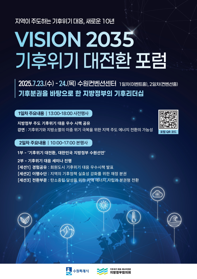 Vision 2035 기후위기 대전환 포럼은 지방정부 주도 기후위기 대응 우수 시책 공유와 기후위기 대응을 위한 발표세션 등의 내용으로 23-24일, 이틀간 개최되었습니다.