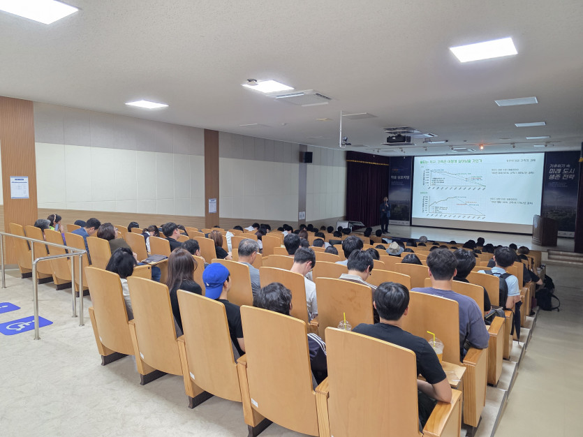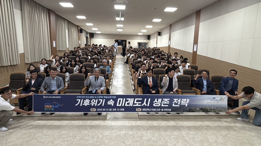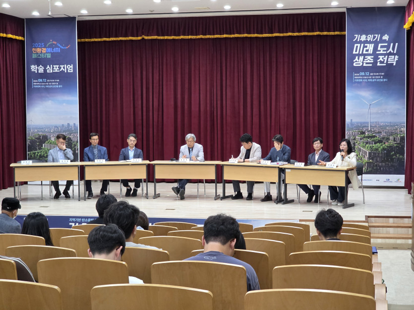 2025년 9월 12일(금), 세명대학교 민송도서관 컨텐츠홀에서 ‘‘기후위기 속 미래 도시 생존 전략’ 학술심포지엄이 개최되었습니다. 이번 심포지엄은 제천시탄소중립지원센터가 주관하고 제천시와 충북에너지산학융합원이 후원하는 2025 친환경에너지 페스티벌과 연계하여 마련된 행사로, 제천시 관계 공무원, 시민, 관내 대학교 및 고등학교 학생들이 참석해 미래세대의 시각에서 기후위기와 탄소중립 문제를 함께 논의할 수 있는 자리였습니다.