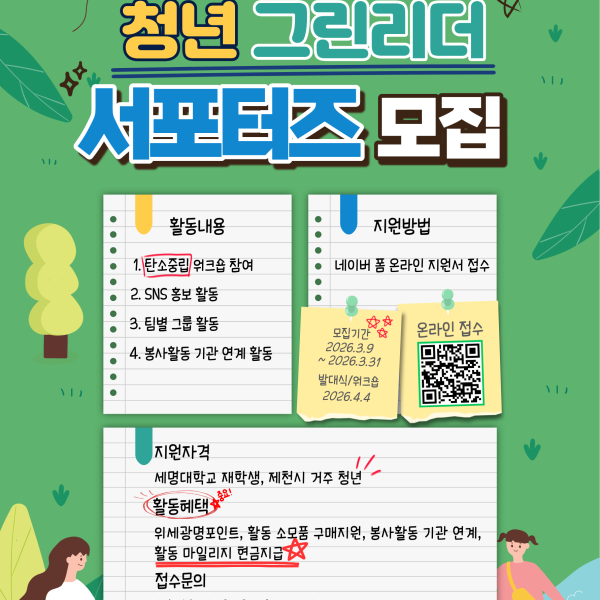 2026 제천시 탄소중립 청년 그린리더 서포터즈 모집