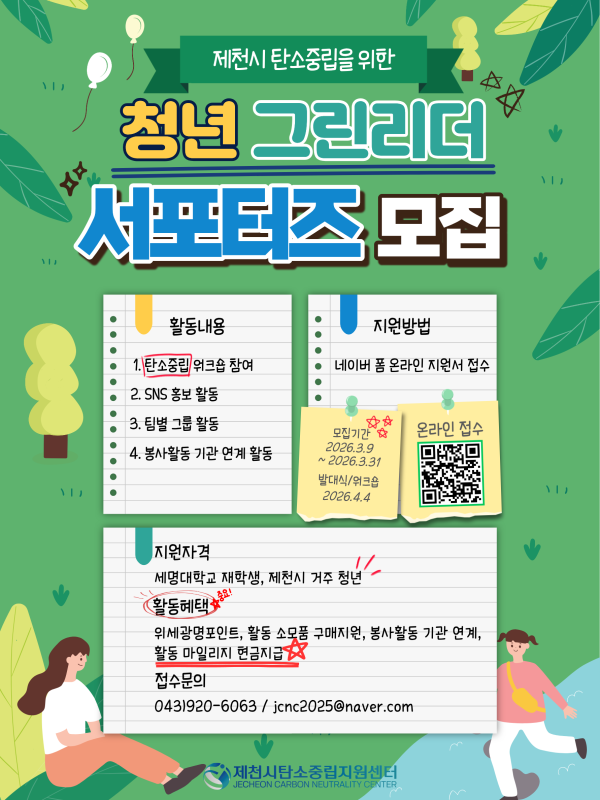 2026 제천시 탄소중립 청년 그린리더 서포터즈 모집