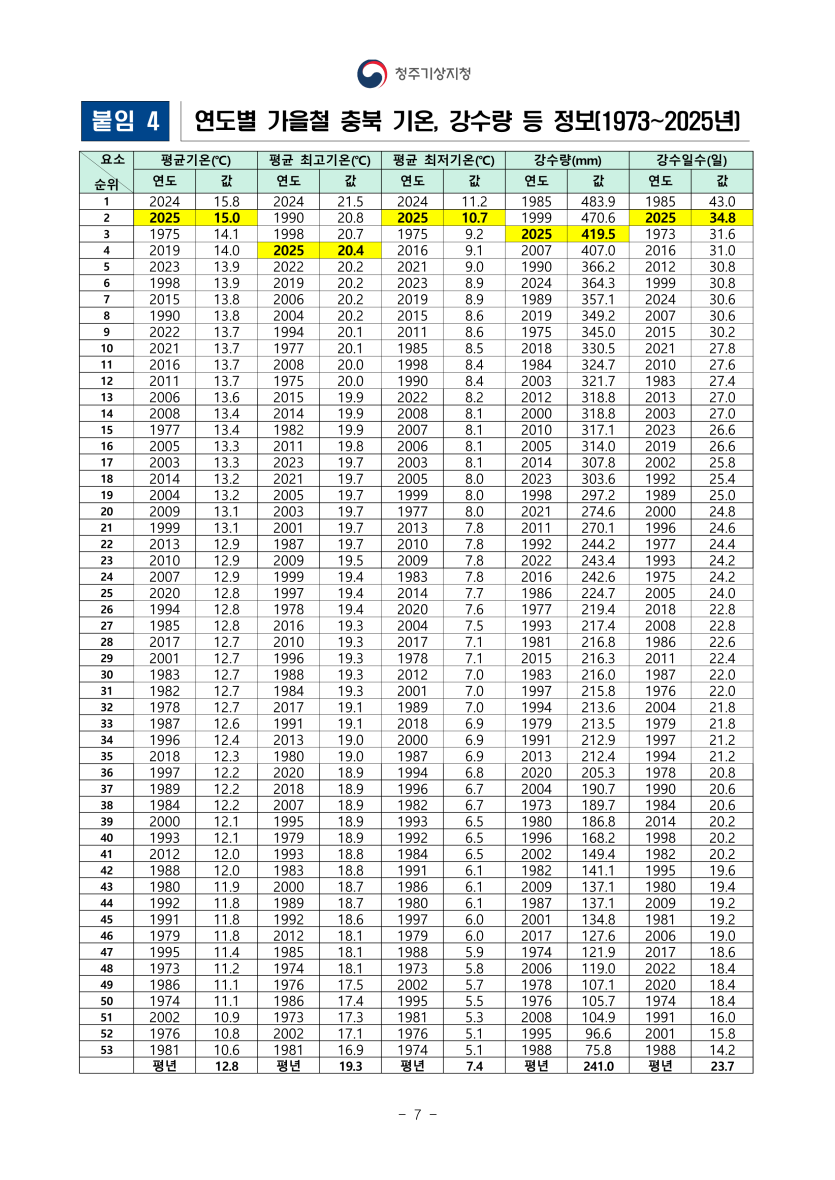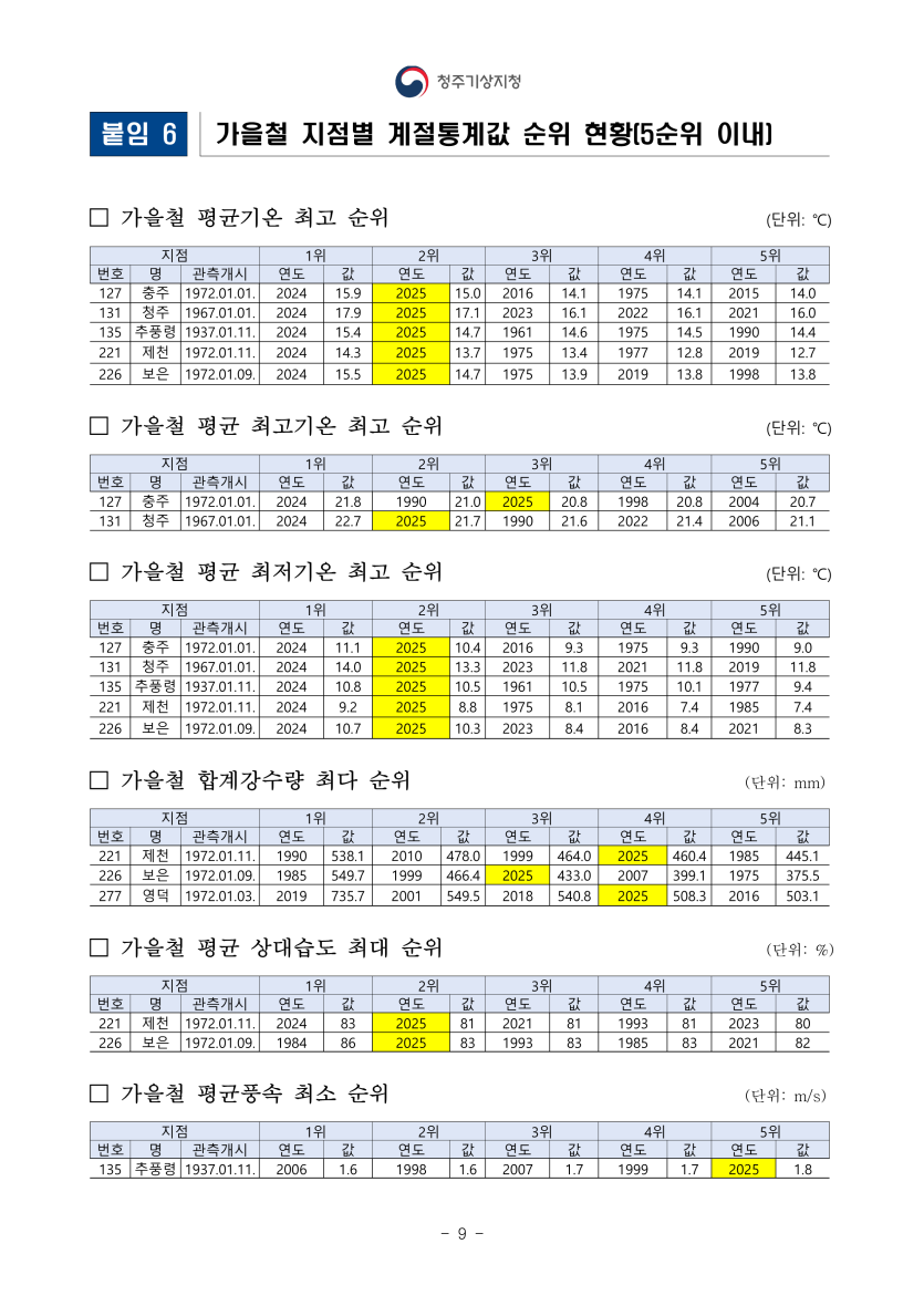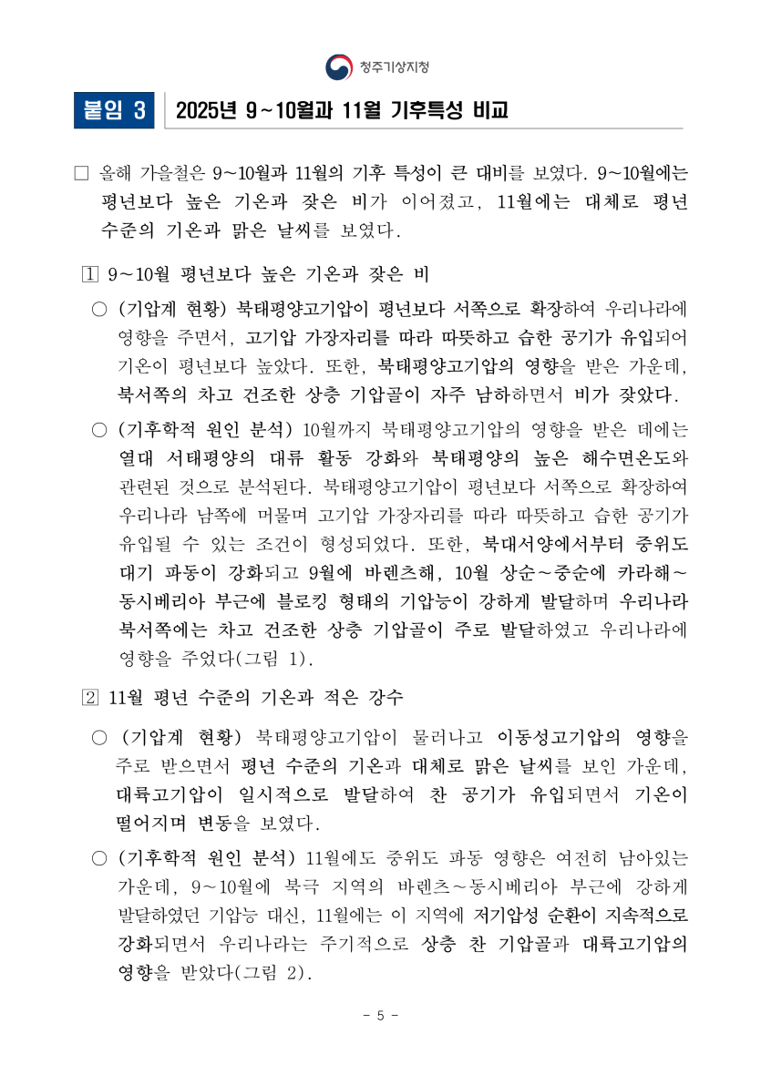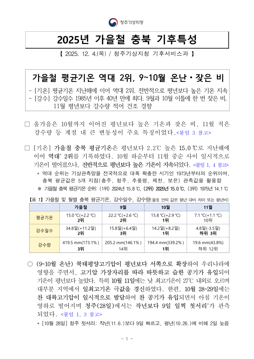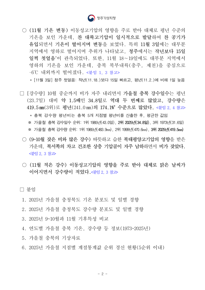 기타 2025년 가을철 충북 기후특성