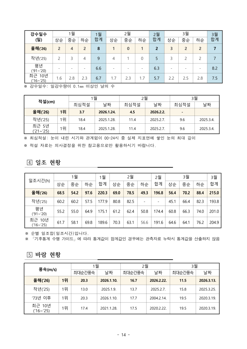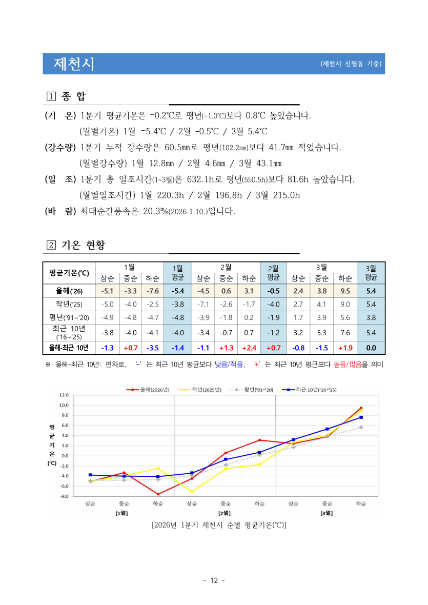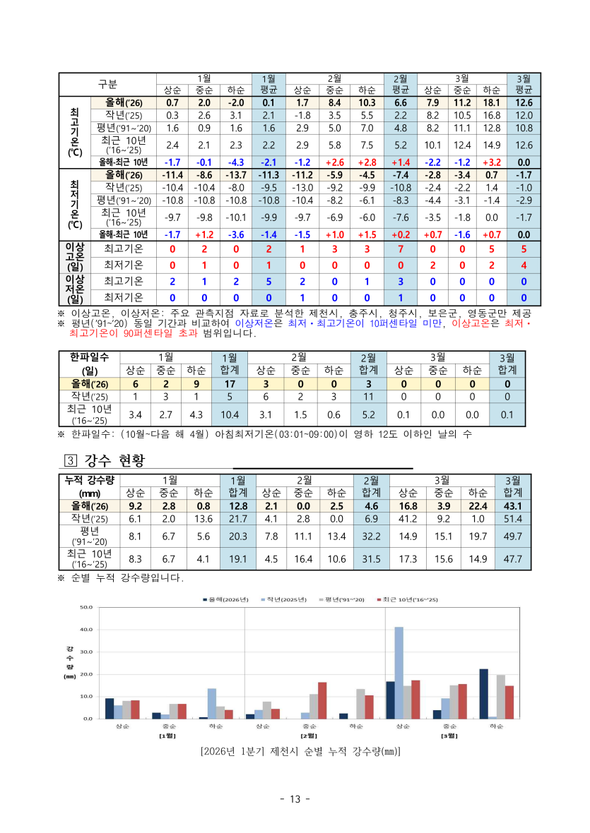 청주기상청에서 작성한 충청북도 기후 포커스(2026년 1분기) 중 일부를 발췌하였습니다.